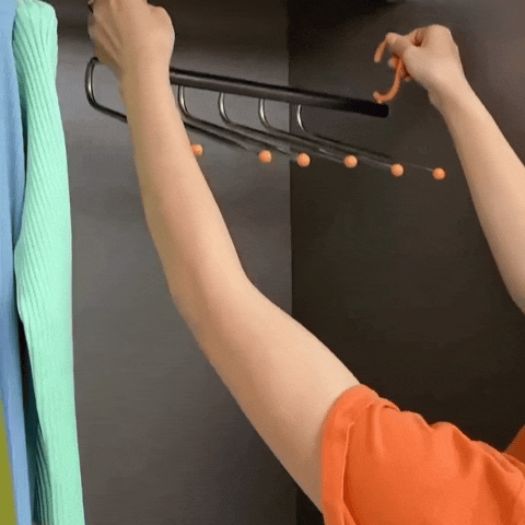 You know the struggle of a packed closet where pants slide off, shirts get wrinkled, or everything’s crammed so tight you can’t find what you need? These clever 5-in-1 foldable hangers fix that fast—they let you hang up to 5 pairs of pants, jeans, or even scarves on one hanger, fold down when not in use, and save tons of space while keeping things neat and crease-free. No more chaos in your wardrobe; it’s like giving your closet a serious upgrade without buying extra shelves or rods.